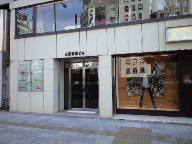 | 地上へ出て正面のビルが心斎橋西ビルです。エレベーターで8階です。 |