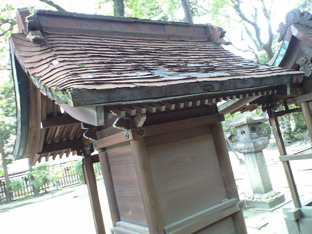 | 小宮 □台座補強と屋根下地及び銅板葺き補修を行い、油拭き仕上げを施しました。 |