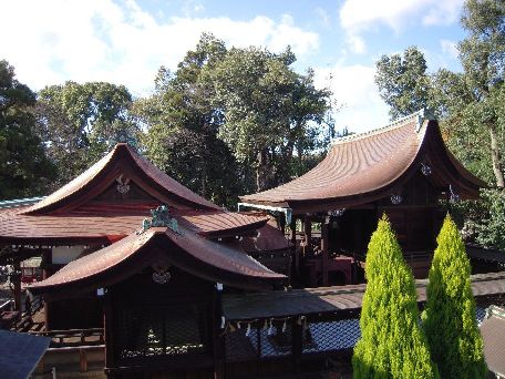 | 左が拝殿と翼殿。右が本殿 |