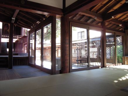 | 社殿内部 □油神社として有名ですが、式典の時には献灯の儀式があります。大切な灯が風で消えないように建具を入れました。 |